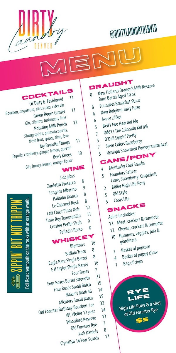 Welcome to Dirty Laundry, a vibrant and inviting bar located in the heart of Denver at 2955 Ulster St #100. Known for its eclectic ambiance and exceptional service, this spot is a true gem for locals and visitors alike.
